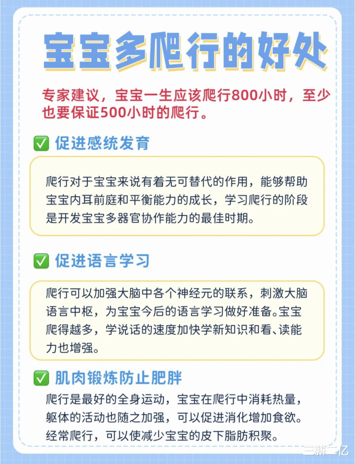 户外爬行的好处那是一箩筐啊!爬行能帮宝宝建立统感,促进大脑双侧分化,对身体的平衡性和协调性有着至关重要的影响。所以,在宝宝学会走路之前,让他多多爬行吧,尤其是在户外。那里有新鲜的空气、丰富的视觉刺激,能让宝宝获得远视储备。更重要的是,你会发现宝宝在户外爬行时简直快乐得像个小小探险家,这种新鲜感是室内环境根本无法提供的。而且,户外的不同地面质地还能让宝宝感受各种触感,刺激他的感官发育。